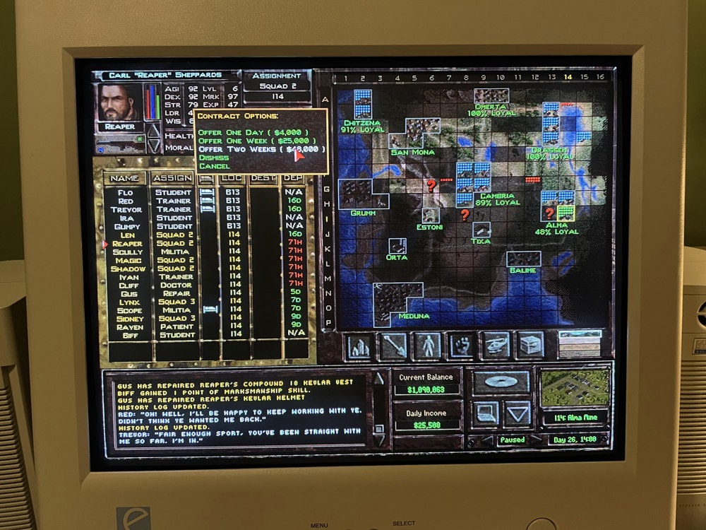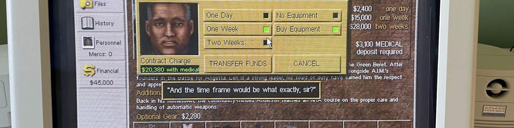 What I love about the game is the chatter and personalities of the mercenaries that you hire and command.