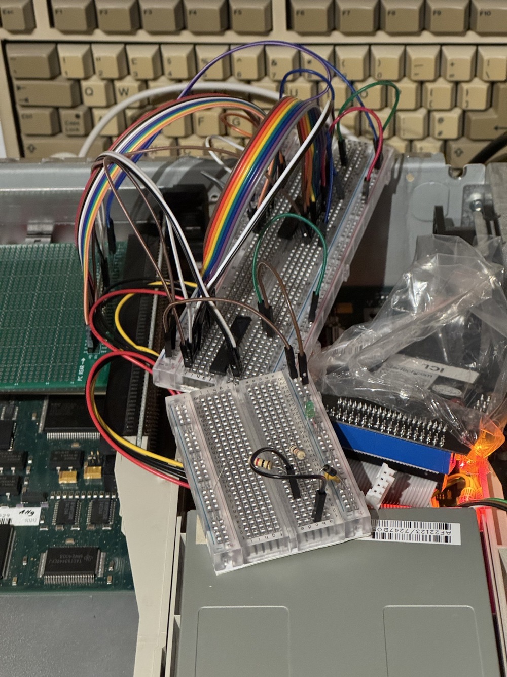 I've ordered some shorter jumper wires, as the ones connecting my debug ISA card to my breadboard are far too long to safely transport the high speed ISA signals.